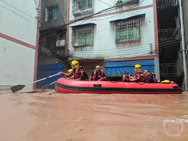 巫溪县消防救援大队指挥中心接到报警后,立即调派5辆消防车、2艘舟艇、28名消防救援人员赶赴现场处置。指战员到达现场后,发现水深齐胸,水位仍在不断上涨。救援人员立即疏散转移被困人员及物资,配合商户将物资全部转移到安全地带,最大限度减少了财产损失。截至目前,当地共疏散群众9人,帮商户安全转移价值约5万余元的受灾物资。目前雨势渐小,水位渐渐退去,救援仍在继续。