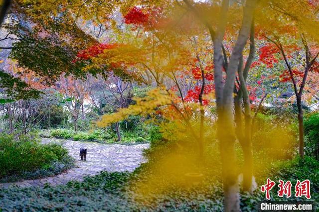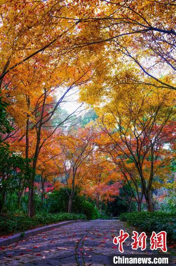 南山植物园内红黄相间的枫叶层林尽染,美不胜收。 郭旭 摄