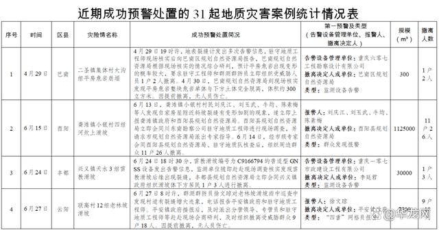 华龙网讯(陈雨 实习生 谢佳)7月24日,重庆市规划和自然资源局通报表扬31起成功预警处置地质灾害灾险情避免造成重大人员伤亡案例。