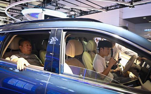 ▲6月20日,国家国展中心(天津),2024世界智能产业博览会重庆馆,工作人员正在给观看介绍赛力斯问界M7。首席记者 龙帆 摄