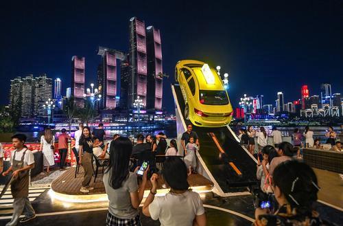 ▲7月16日,南岸区南滨路“长江之眼”,众多游客正来到这里欣赏美丽的夜景。记者 郑宇 实习生 马妍雯希 摄