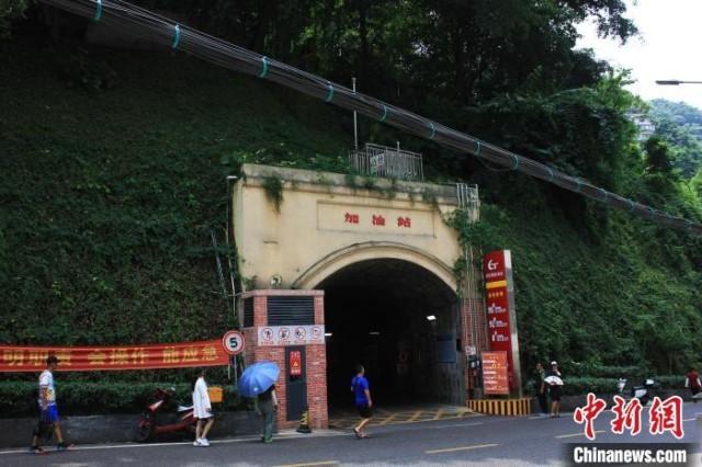 近年来,重庆不少防空洞变身休闲“打卡地”,开发出火锅店、书屋、纪念馆等多种业态,防空洞逐渐转变为多元化利用的现代城市资源。图为由防空洞改造的加油站。唐艺珊 摄
