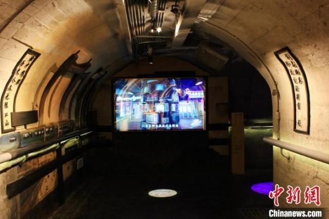 近年来,重庆不少防空洞变身休闲“打卡地”,开发出火锅店、书屋、纪念馆等多种业态,防空洞逐渐转变为多元化利用的现代城市资源。图为渝中区一防空洞内的电子屏播放着城市宣传片。唐艺珊 摄