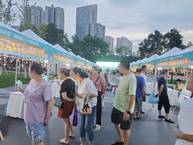 随着夜幕降临,高温褪去,到人才集市打卡的人络绎不绝。