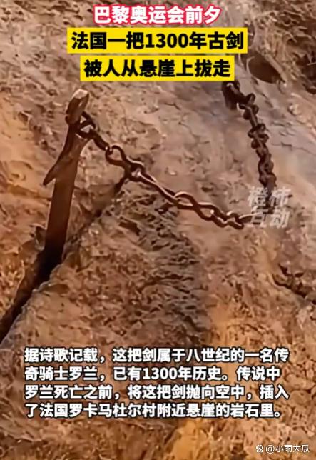 #山城趣闻#法国1300年古剑被人从悬崖上拔走!网友:这是找到真正的主人了?