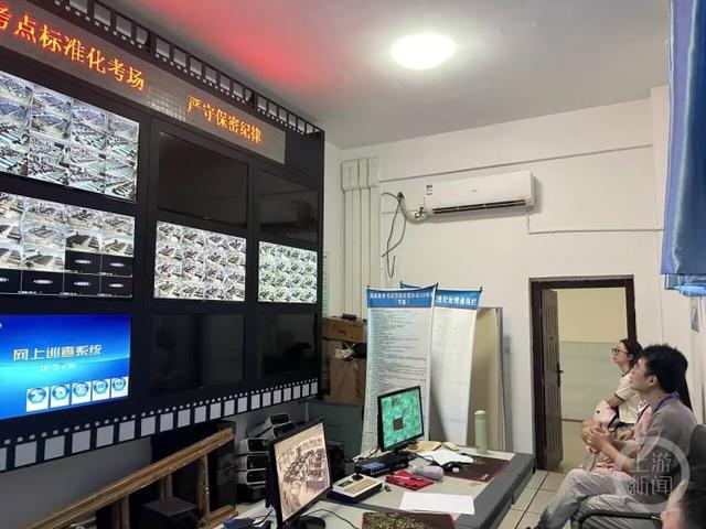 在“诚信考试示范考场”里,学校工作人员发完考卷后便离开考场。在标准化考场监控室里,记者看到,考试过程中,教室内没有监考老师的身影,但秩序井然。同学们自觉遵守考试纪律,认真答题,直至“考试结束”铃声响起,最后一名交卷的考生收完整个考场的试卷,安静离场。