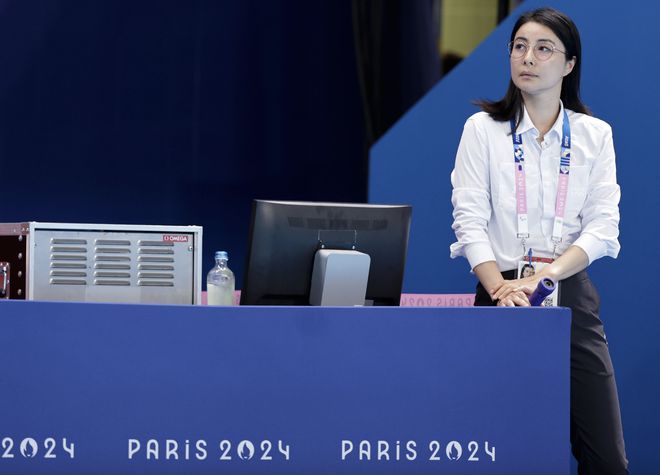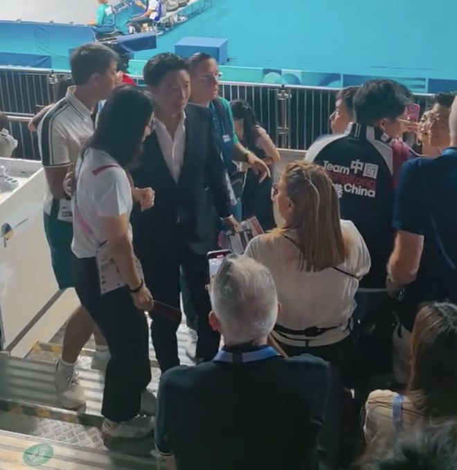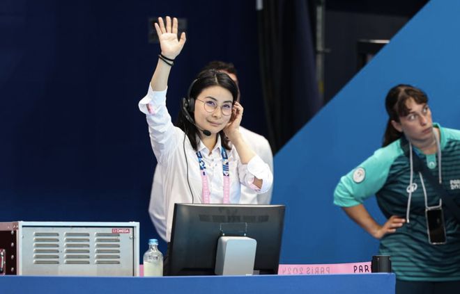 郭晶晶此次不仅是来观赛的,还是来当跳水的裁判长的,她工作时的造型又美又飒,态度专业认真,获得了一致好评。