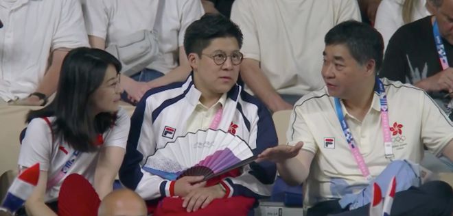 当日,作为香港队的领队霍启刚现身观众席,同行的还有妻子郭晶晶、弟弟霍启山以及父亲霍震霆。